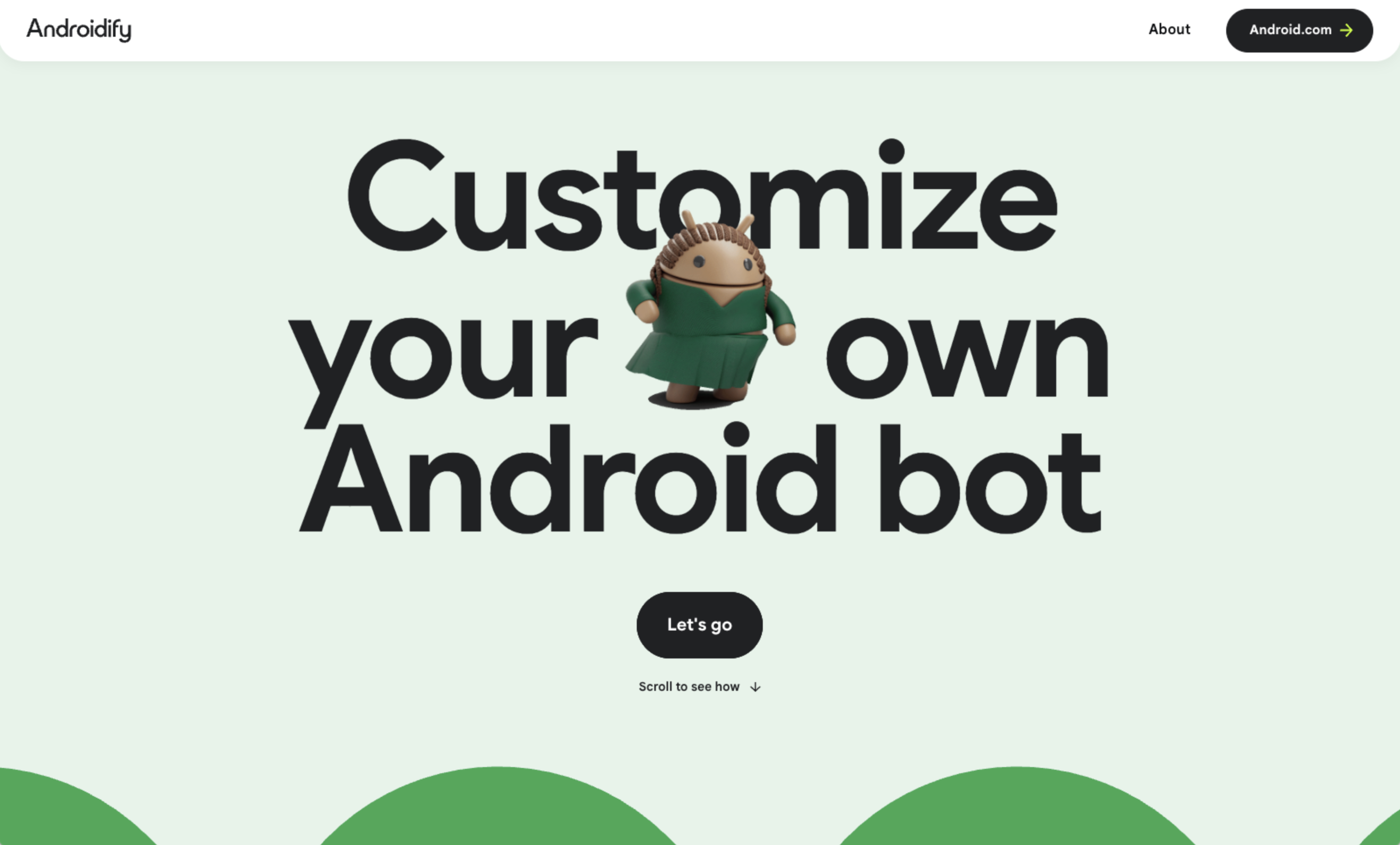 Androidify is a fun generative AI web app that builds a customized Android Bot of yourself.
