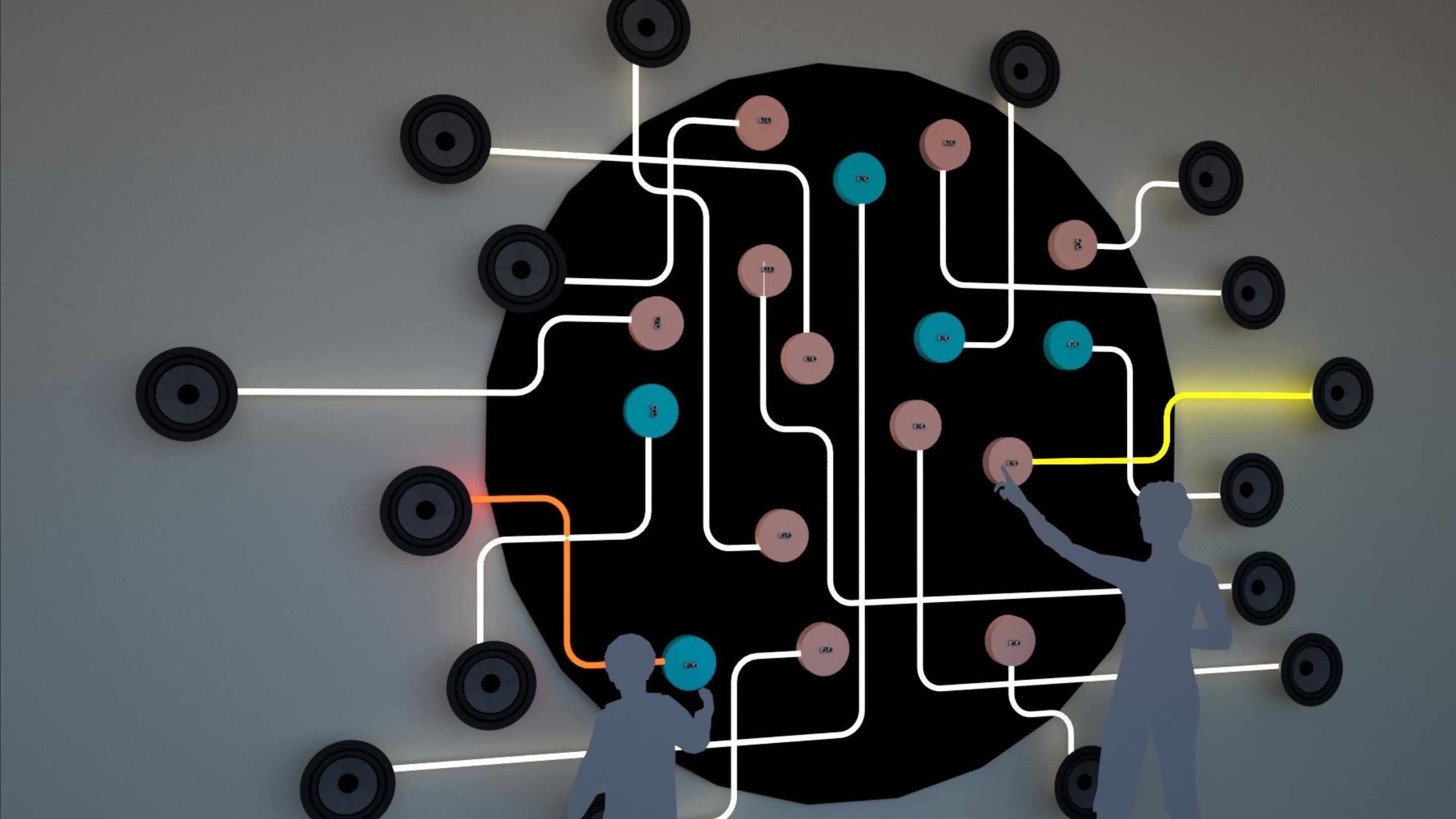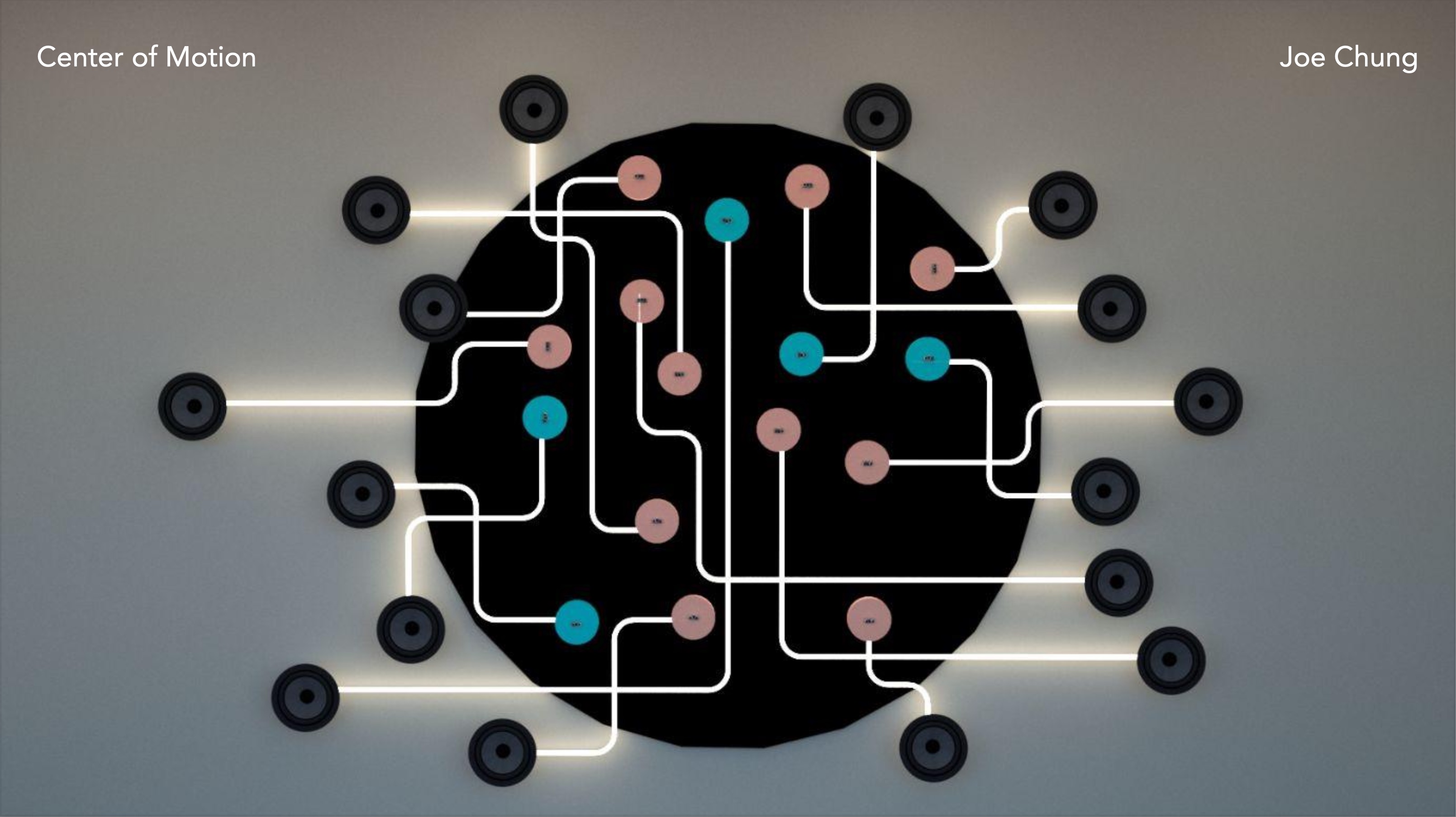 Center of Motion is a conceptual proposal for an interactive, sensor-augmented environment that examines how human movement, proximity, and collective behavior could shape an adaptive audiovisual space. The project imagines a modular wall-mounted system equipped with contactless proximity sensing, where light and sound respond directly to a visitor’s bodily movement—turning spatial navigation into a form of embodied music-making.
